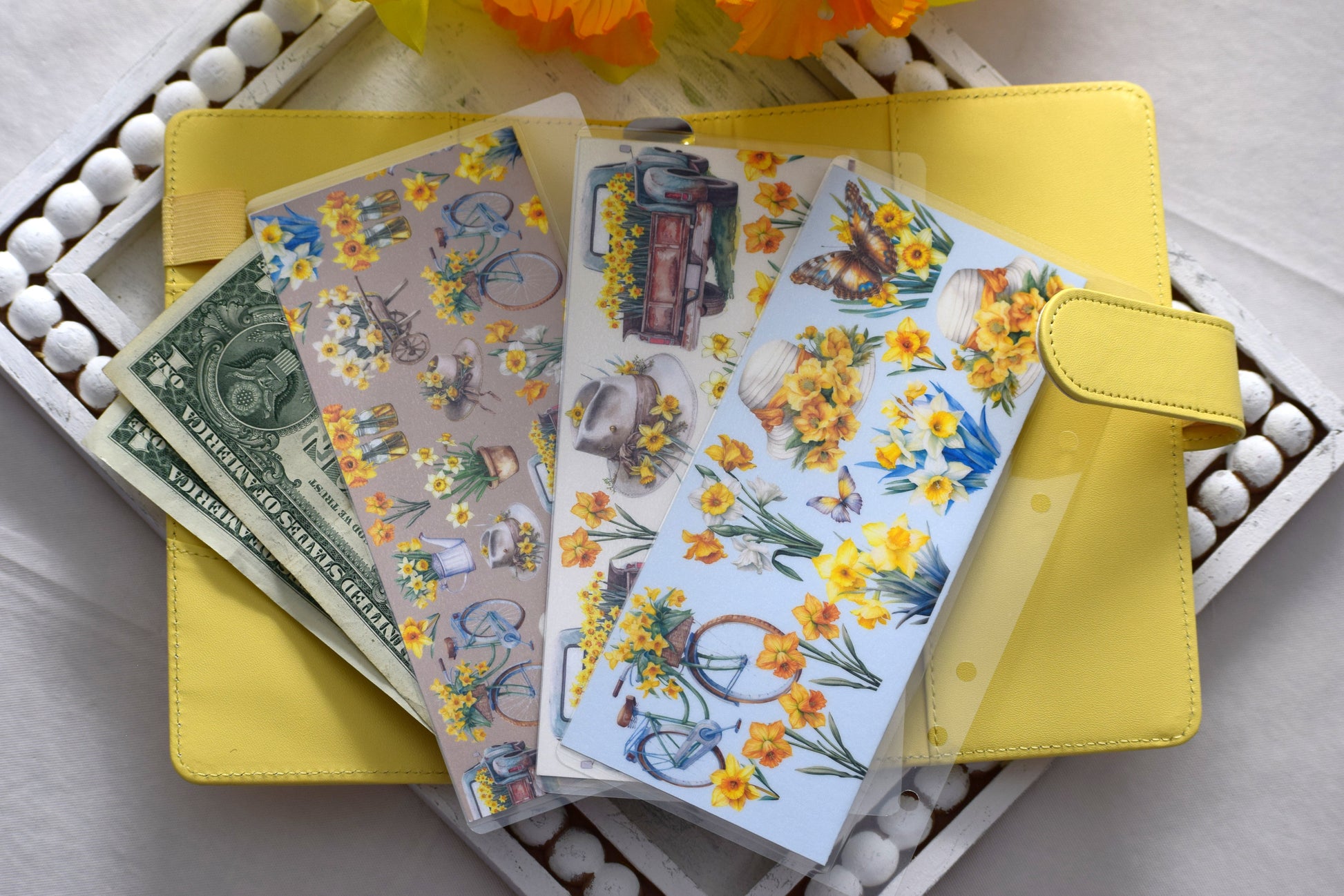 A6 Laminated Cash Envelopes, Cash Binder Envelope, Daffodil Delight Theme