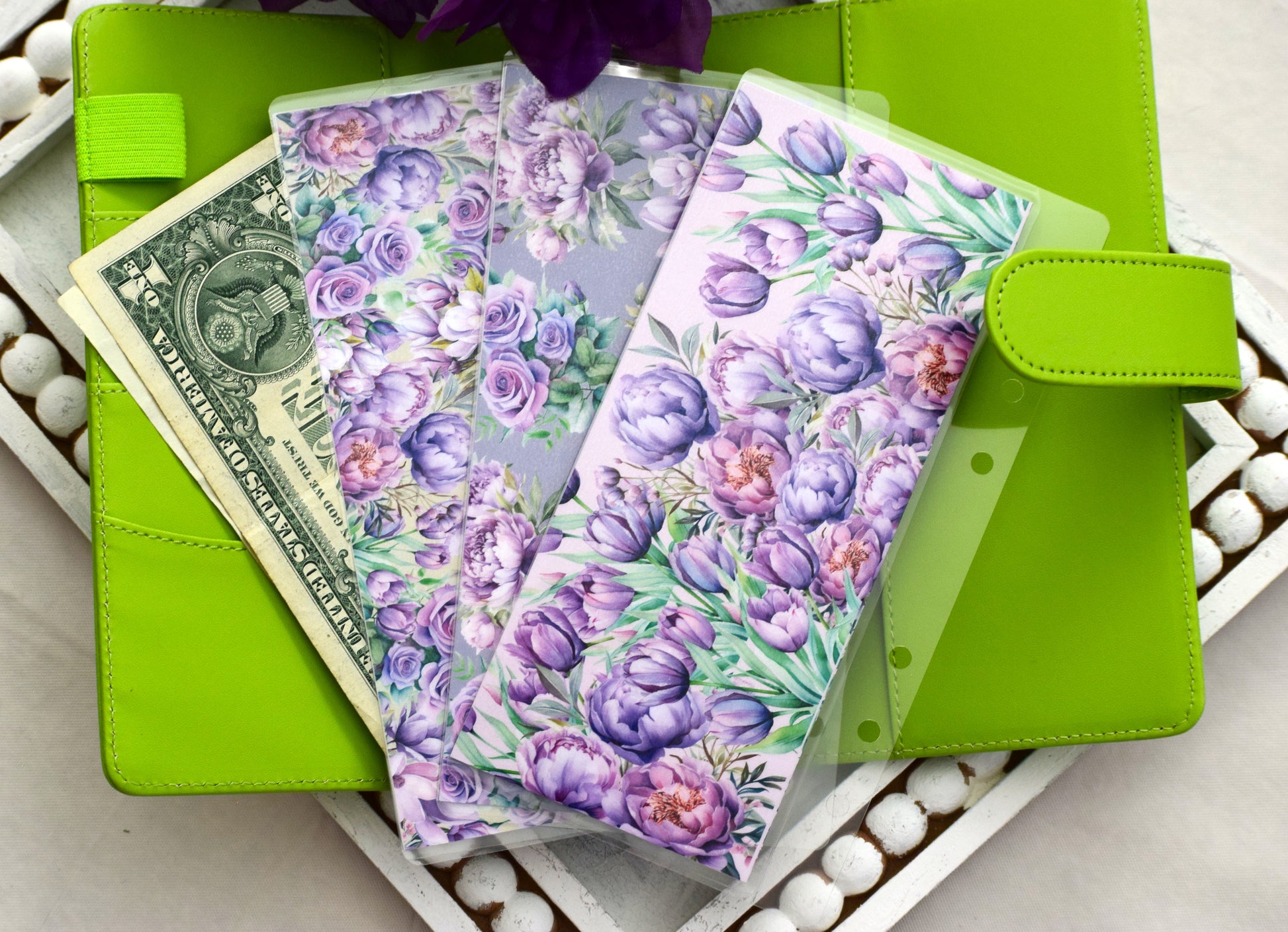 A6 Laminated Cash Envelopes, Cash Binder Envelope, Purple Blooms Theme