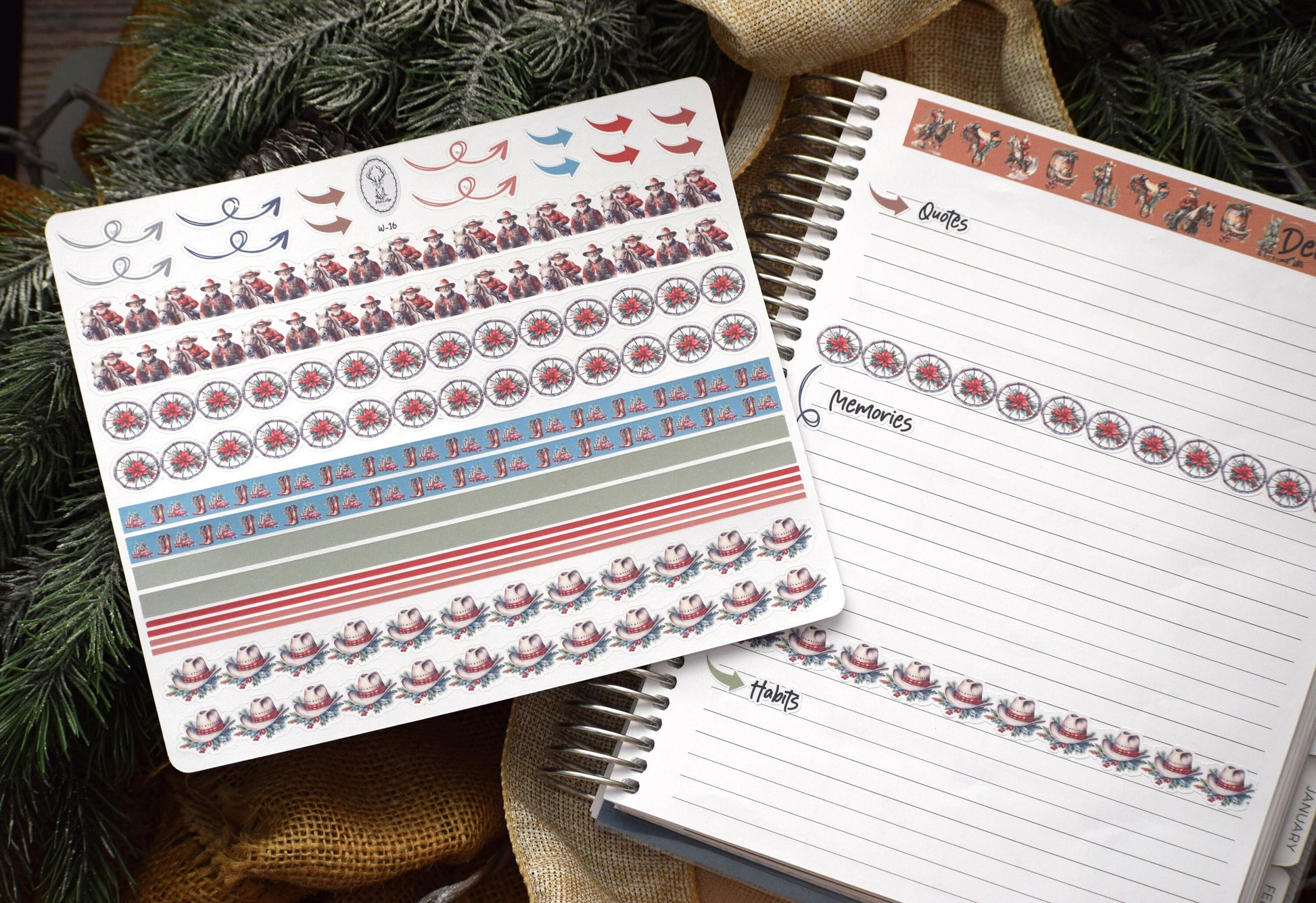 Washi sheet has various washi strips in various sizes, highest being approx. .5 inches. All strips are 7.5 inches long. Can be used in any planner or any project. Stickers are a premium removable paper.